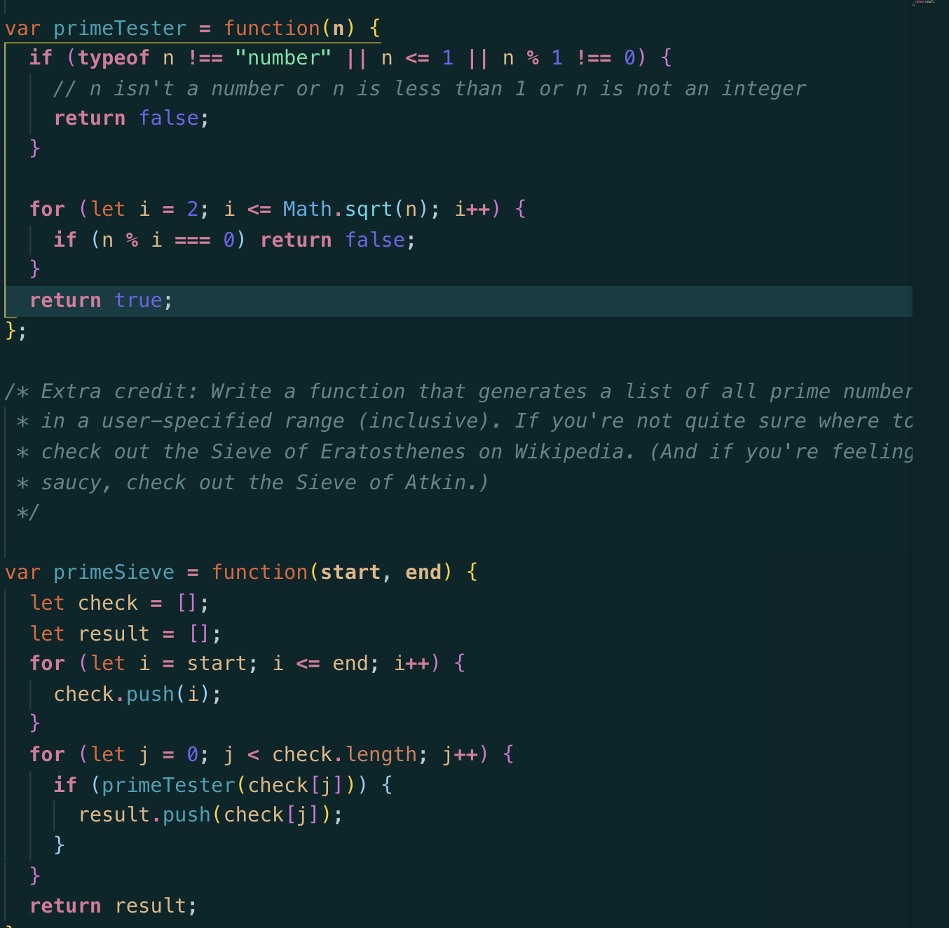 Toy 31번 문제. 숫자 n 이 소수인 지 판별하는 함수를 작성하고 n ~ n 까지 있는 소수를 배열로 리턴하는 함수 작성.