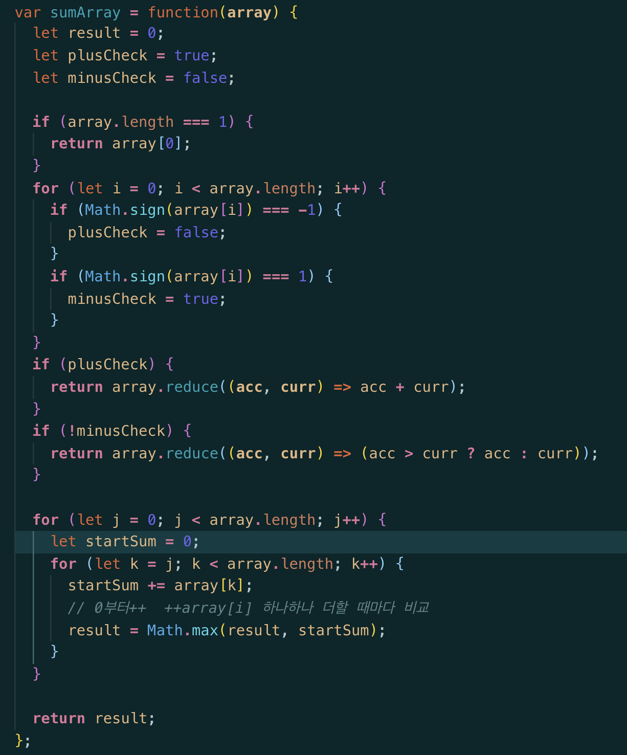 Toy 35번 문제. 배열 내에서 연속된 숫자의 값이 가장 큰 경우를 리턴.