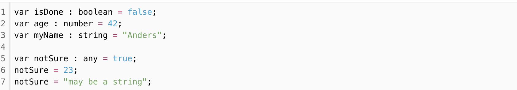 자바스크립트의 var 와 같은 자료형 대신, string, number와 같은 자료형을 지정함으로써 안정성을 확보할 수 있다.