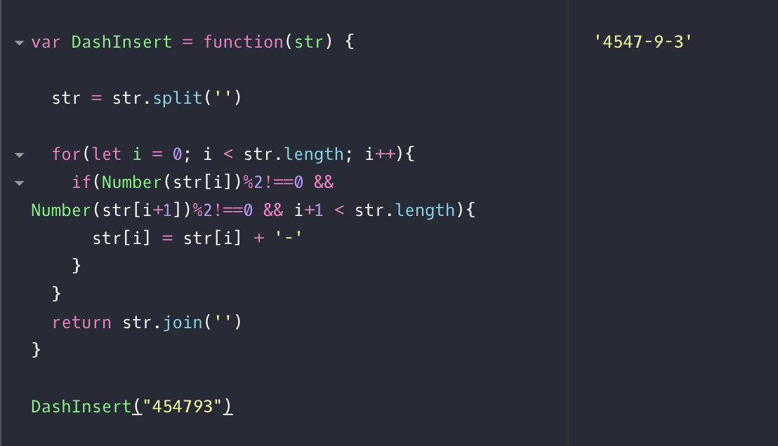 3. 연속된 문자열 또한 홀수일시 '-' 추가.