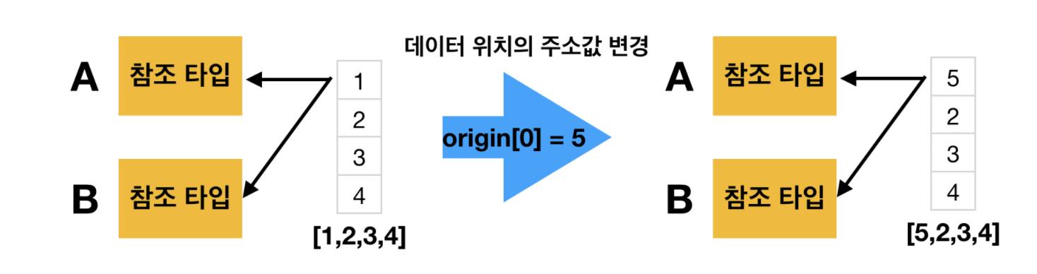 // 같은 주소를 바라보고 있으므로 origin 과 copy 모두 변경됩니다.