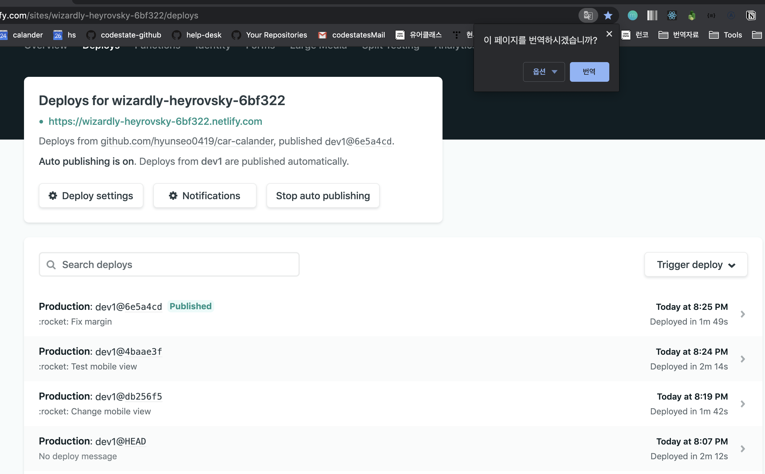 그리고 해당 레파지토리의 브랜치가 업데이트가 되면 자동으로 수정된 코드를 배포해준다.