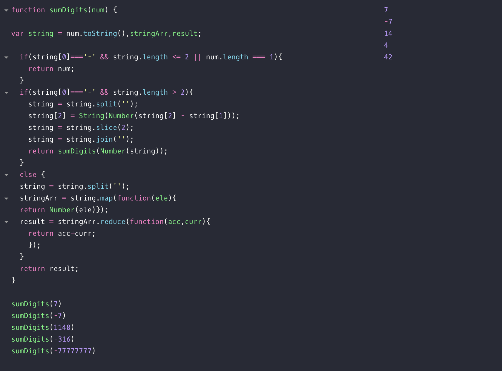 4. 양수의 경우 각 자릿수의 값을 reduce를 사용해 누적 값을 리턴.