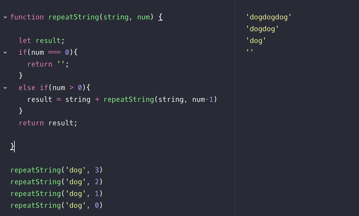2. n > 0 일 경우 string + n-1번만큼 재귀함수 실행.