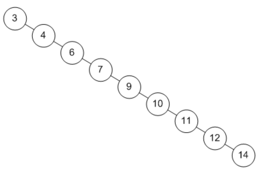 편향 이진 트리는 말 그대로 노드들이 전부 한 방향으로 편향된 트리이다.