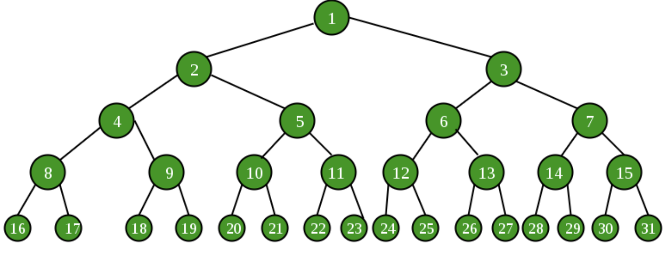 완전 이진 트리는 왼쪽자식노드부터 채워지며 마지막 레벨을 제외하고는 모든 자식노드가 채워져있는 트리이다.