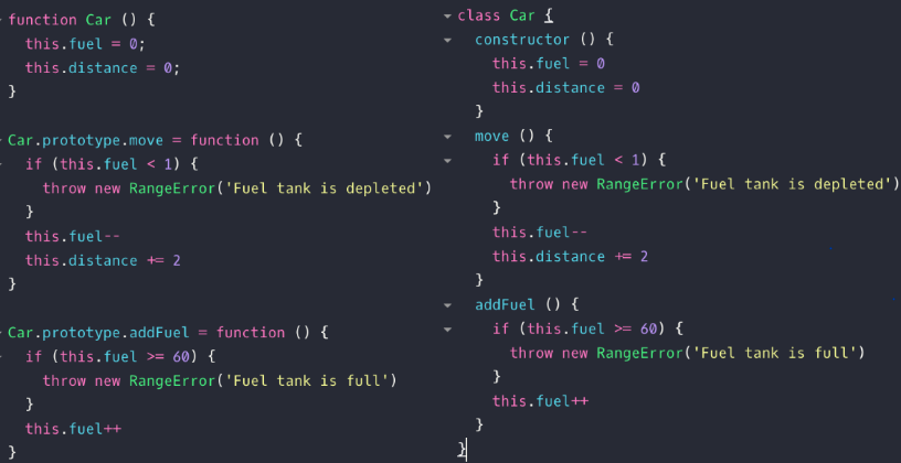 prototpye 과 class 의 차이를 코드로 먼저 보자면 거의 비슷하지만 다른 class 기반 언어처럼 적어 사용한다.