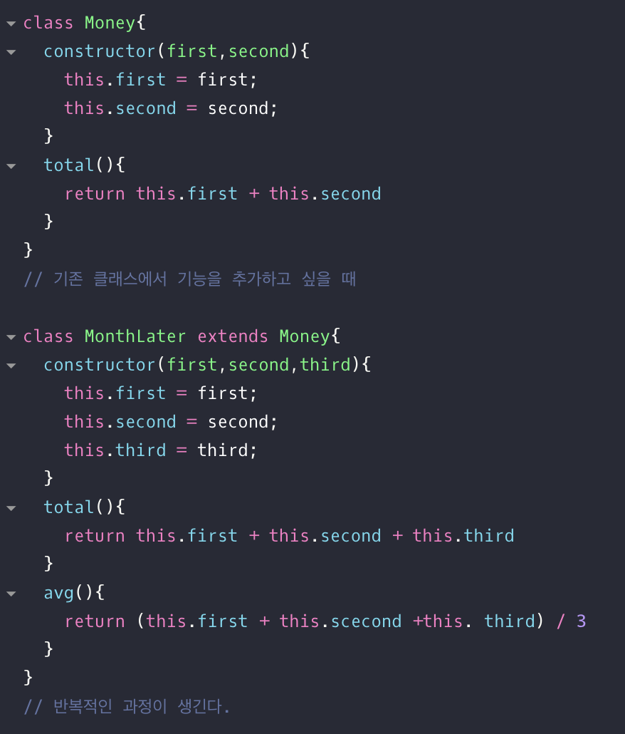여기서 부모에서의 기능과 중복되는 부분을 묶어서 자식에 간단하게 작성하고 추가로 작업할 수 있게 가능해진다.