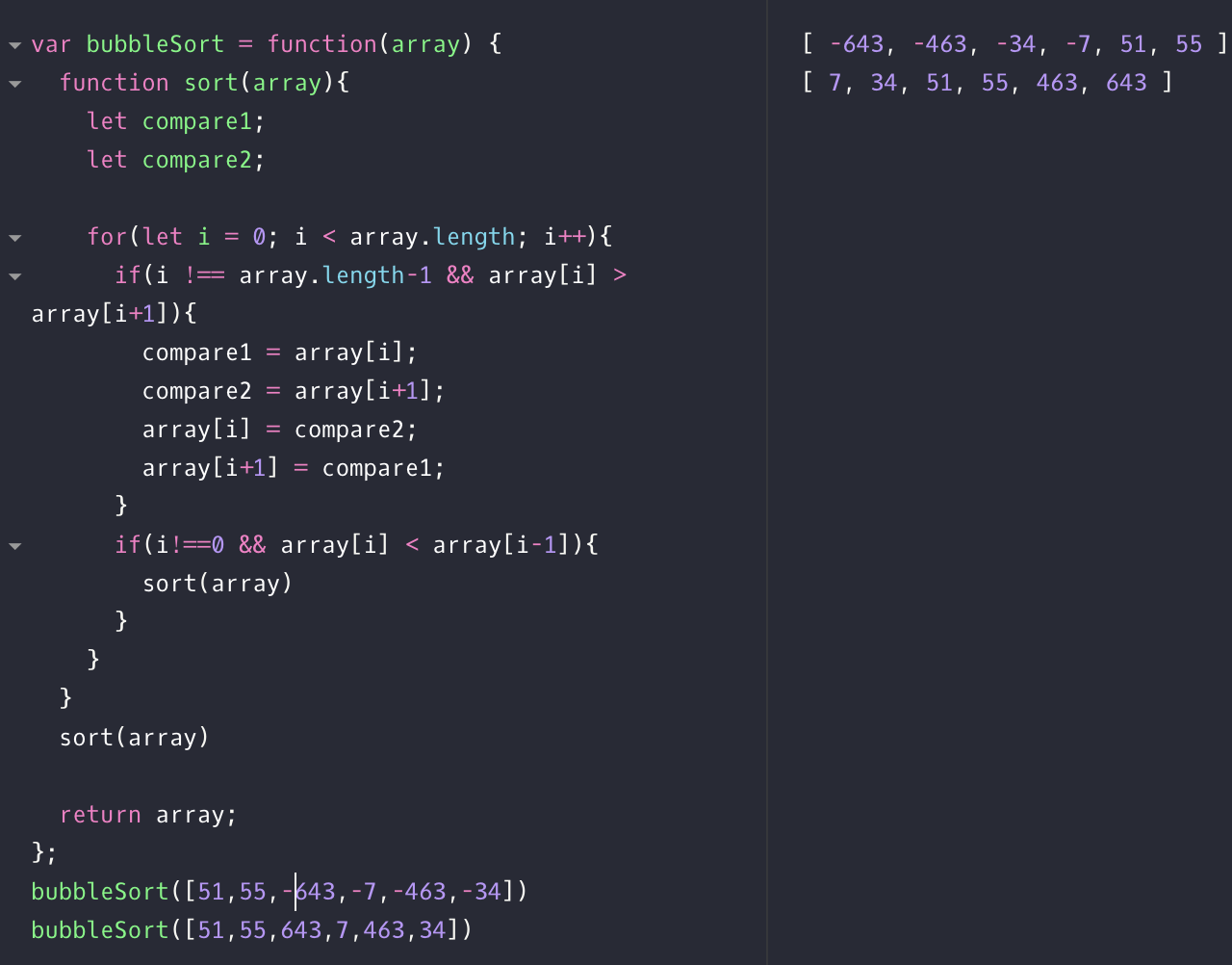 Toy 05번 문제. sort 메소드를 사용하지 않고 bubble sort 구현하기. 배열 내에 숫자를 오름차순으로 정렬.