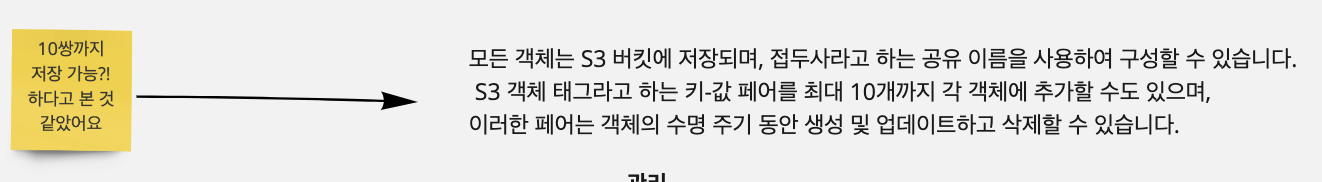일반적인 파일시스템의 개념과는 약간 다르고, 파일 이름을 대표하는 key와 파일 자체로 구분되는 Object Storage이다. == 자바스크립트 객체라고 생각하면 편할 것 같다.