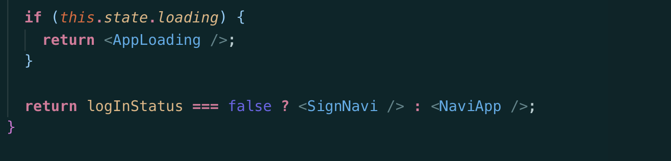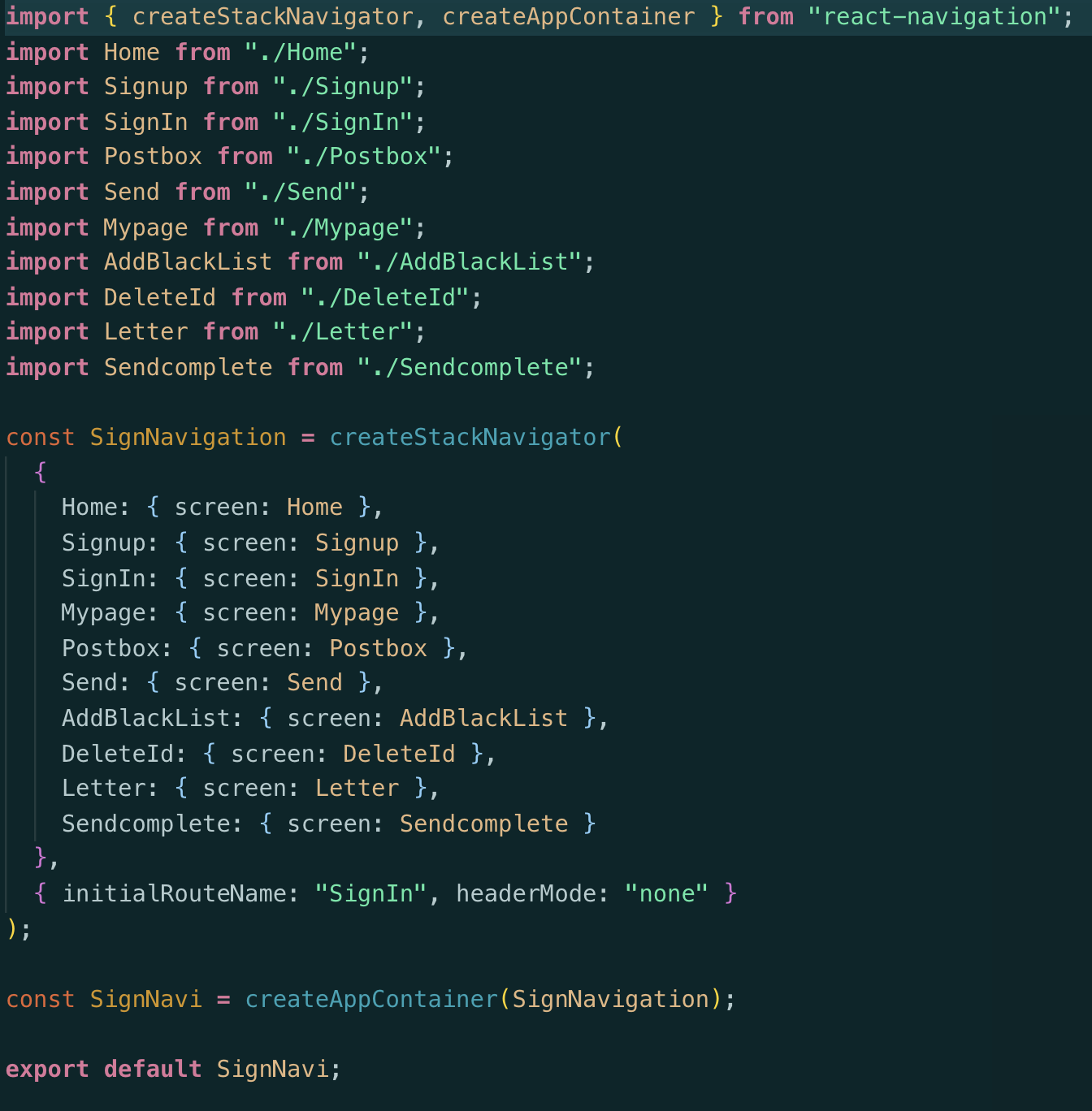 { initialRouteName: "SignIn", headerMode: "none" } : render 시에 가장 먼저 띄워질 화면 생성.