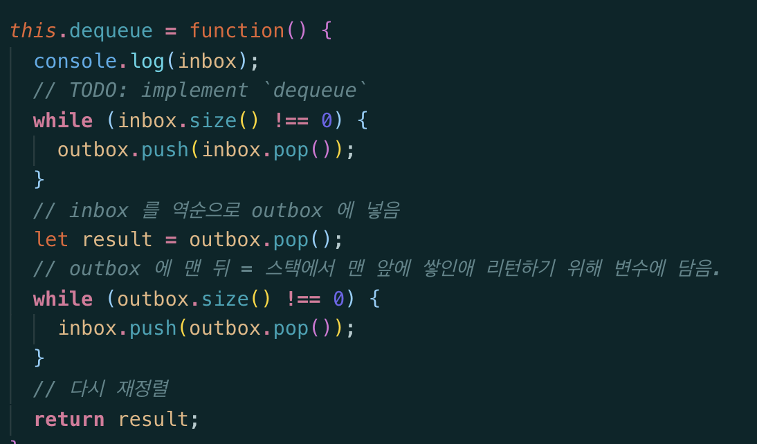 Toy 27번 QueueStack 2개의 stack 을 이용해서 queue 를 만드는 부분에서 실패.