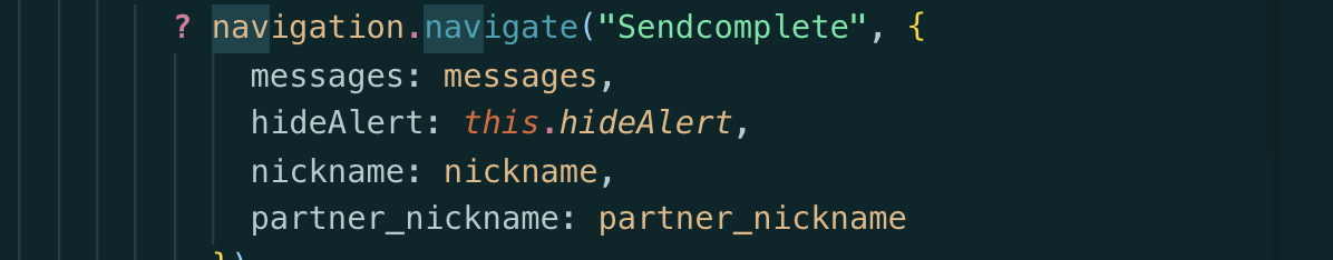 받을 땐 this.props.navigation.state.params. props Name .