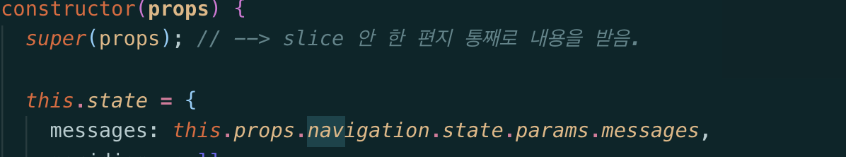 받을 땐 this.props.navigation.state.params. props Name .